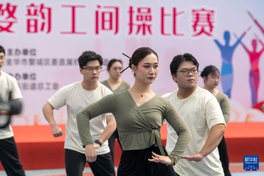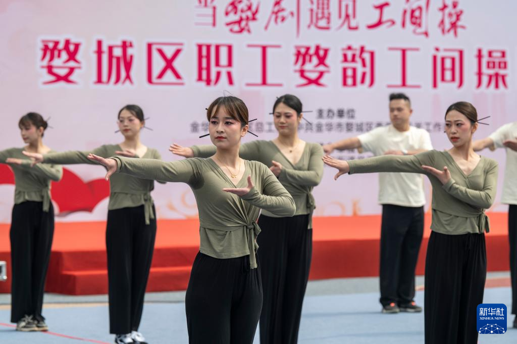 今年开始,浙江省金华市婺城区总工会制定了“婺韵工间操”培训计划,让工间操跳进车间、社区、学校,弘扬中华传统文化,推动婺剧传承发展。