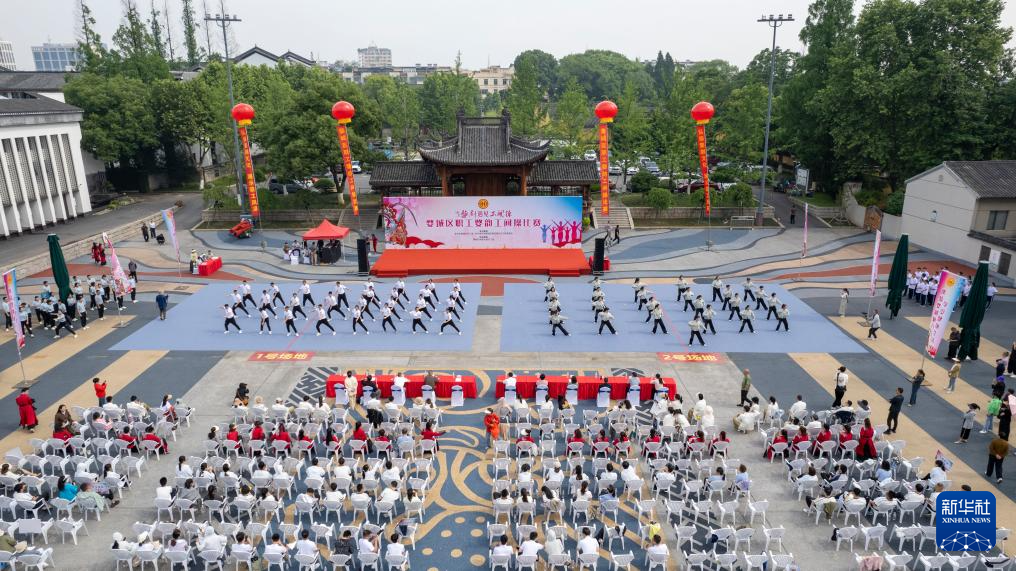 这是5月13日拍摄的“婺韵工间操”比赛现场(无人机照片)。新华社发(胡肖飞 摄)