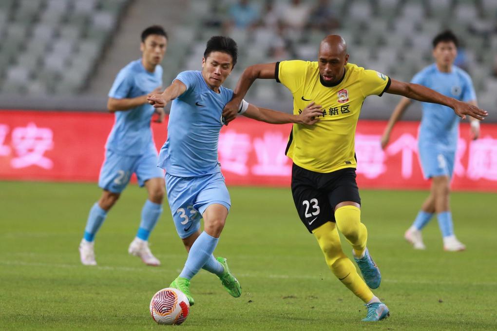 深圳新鹏城与青岛西海岸碰面,客队先声夺人:第15分钟,阿兰大禁区内斜塞后点,里亚斯科斯一蹴而就。两分钟后,主队打出倒三角配合,阿尔门特罗斯中路推射破门,半场双方战成1:1。