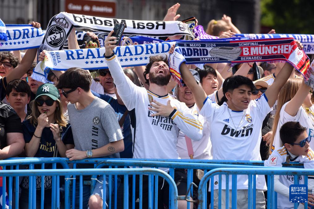 5月12日,皇家马德里队球迷在西贝雷斯广场参加巡游活动。新华社发(古斯塔沃·巴连特摄)