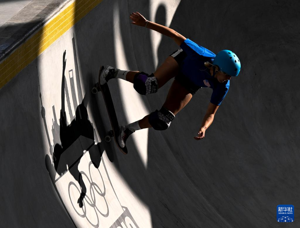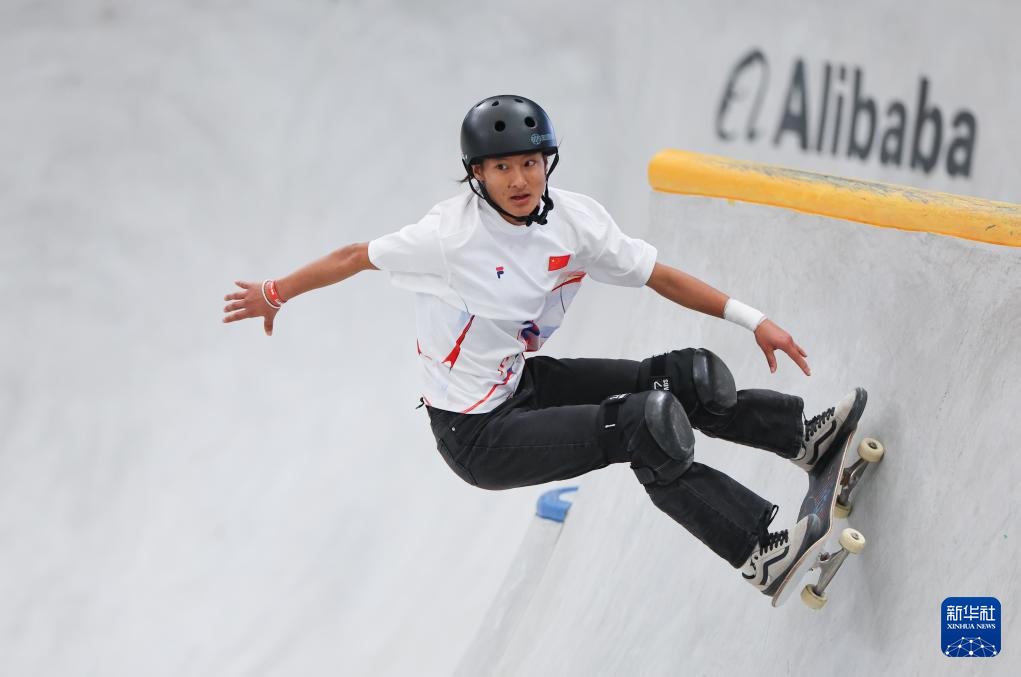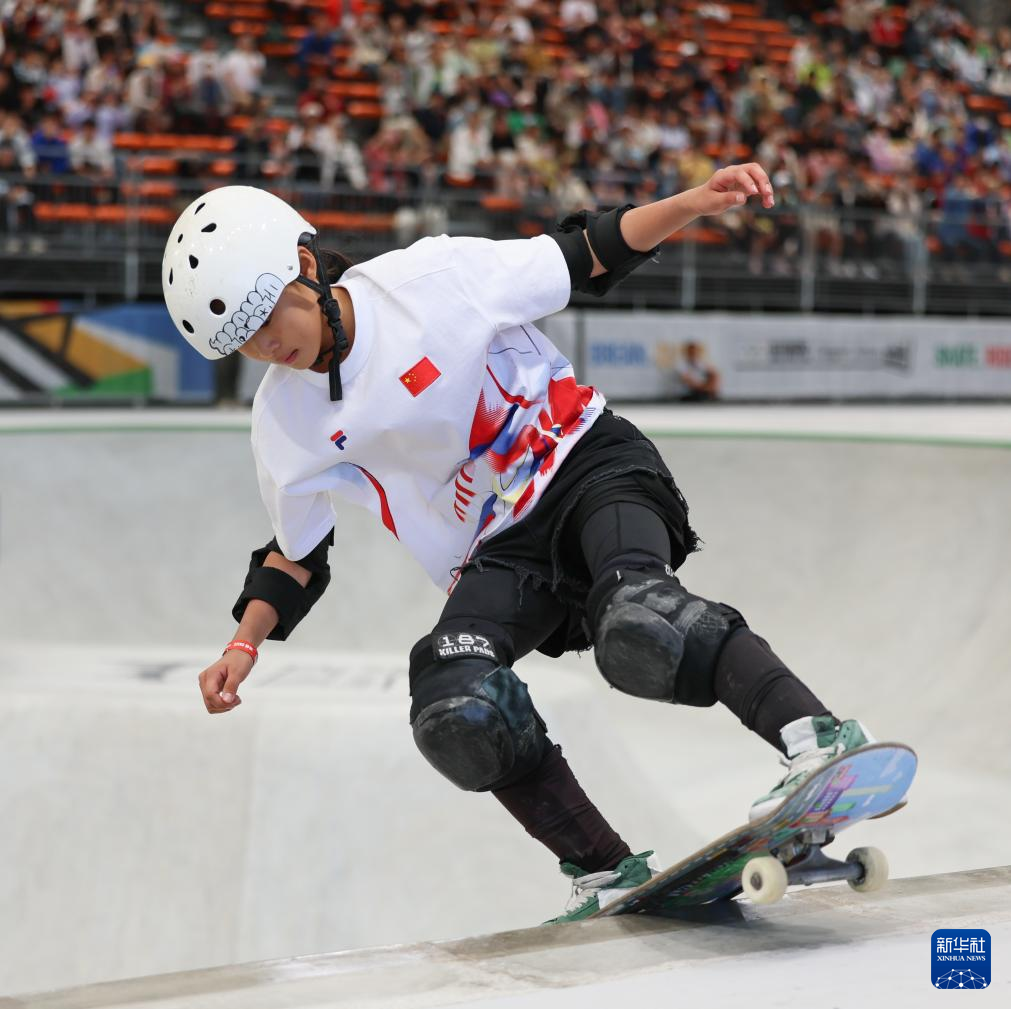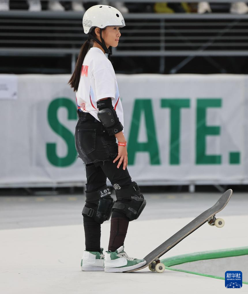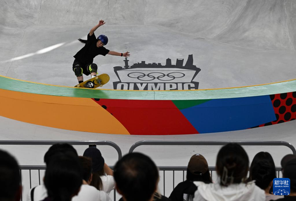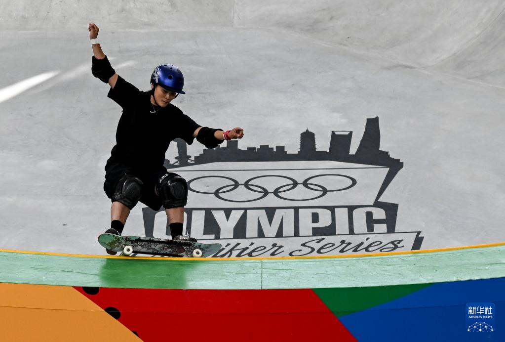当日,巴黎奥运会资格系列赛上海站滑板女子碗池预赛在上海举行。