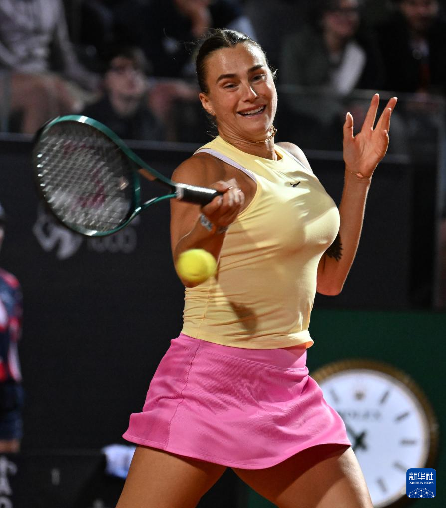 5月16日,萨巴伦卡在比赛中回球。新华社发(阿尔贝托·林格利亚摄)