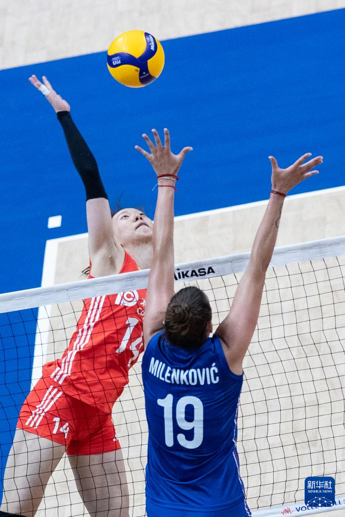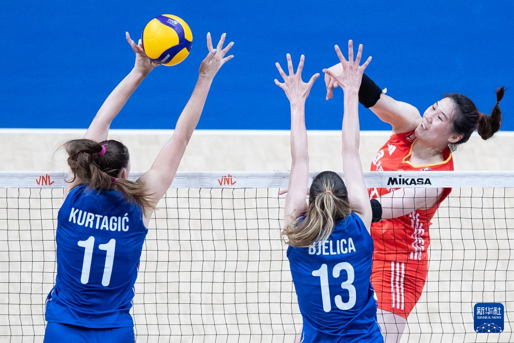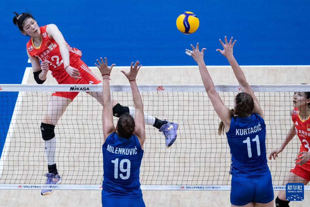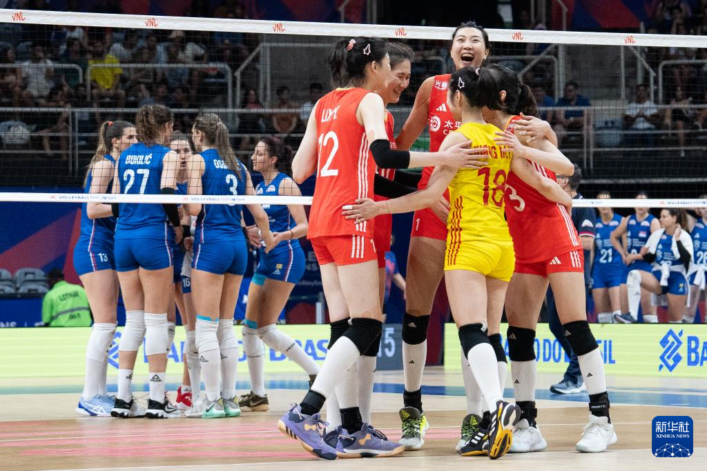 当日,在2024世界女排联赛里约热内卢站比赛中,中国队3比1战胜塞尔维亚队。