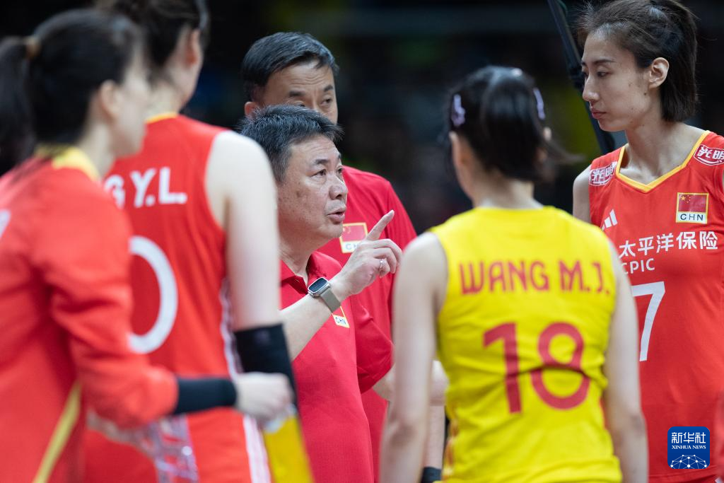 5月18日,中国队主教练蔡斌(中)在比赛间隙指导队员。新华社记者 王天聪 摄
