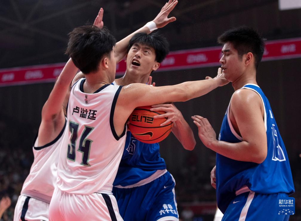 5月19日,青岛六十七中队球员王子鉴(中)在比赛中突破。新华社记者 雒圆 摄