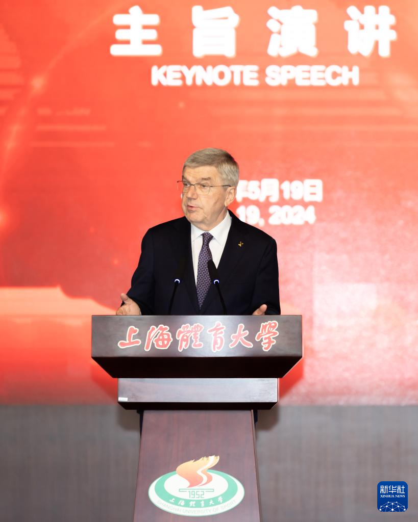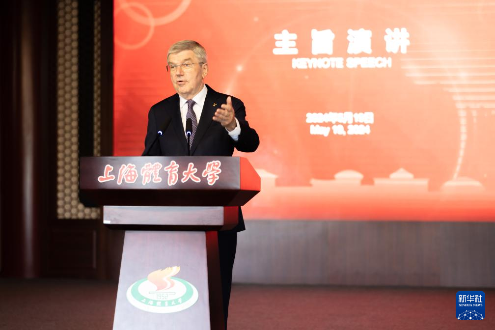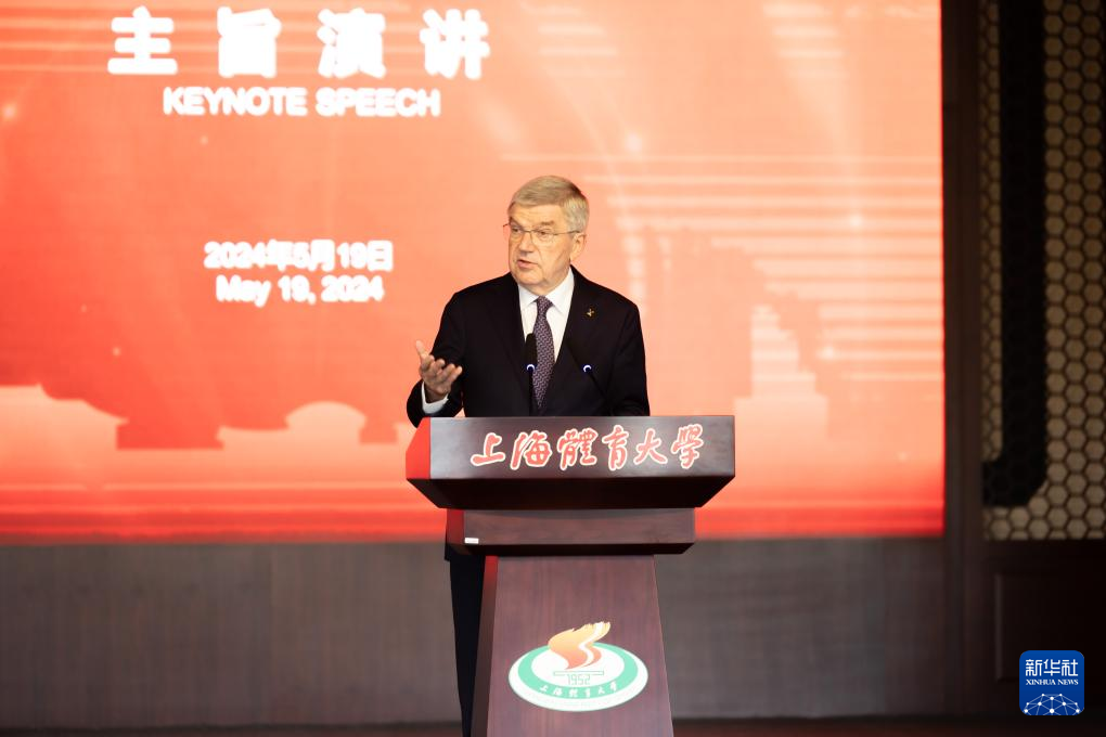 5月19日,国际奥委会主席巴赫在上海体育大学发表主旨演讲。新华社记者 王翔 摄