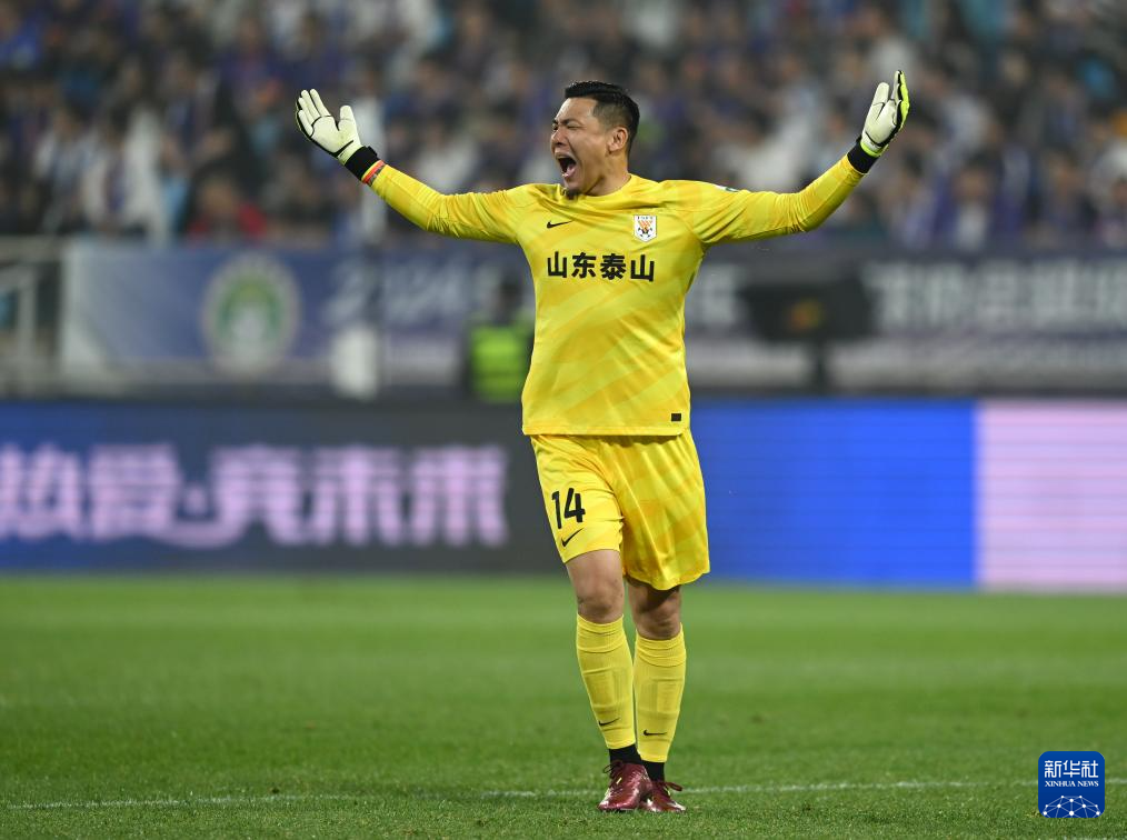 5月21日,山东泰山队守门员王大雷在比赛中。新华社记者 赵子硕 摄