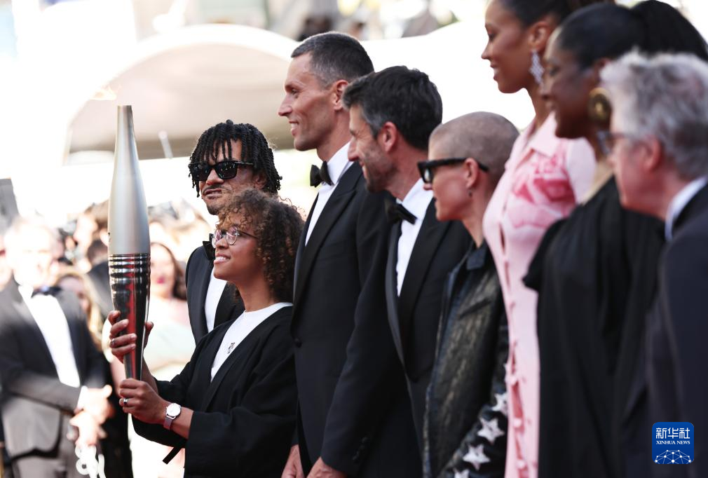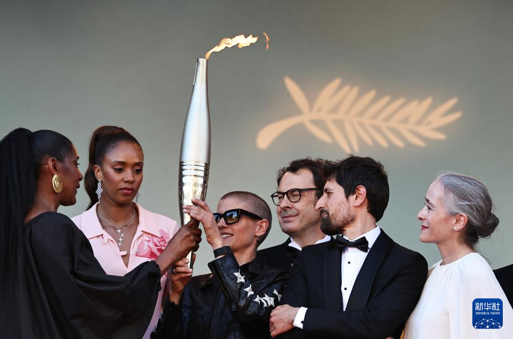 5月21日,巴黎奥运会火炬亮相法国南部小城戛纳举行的第77届戛纳国际电影节。新华社记者 高静 摄
