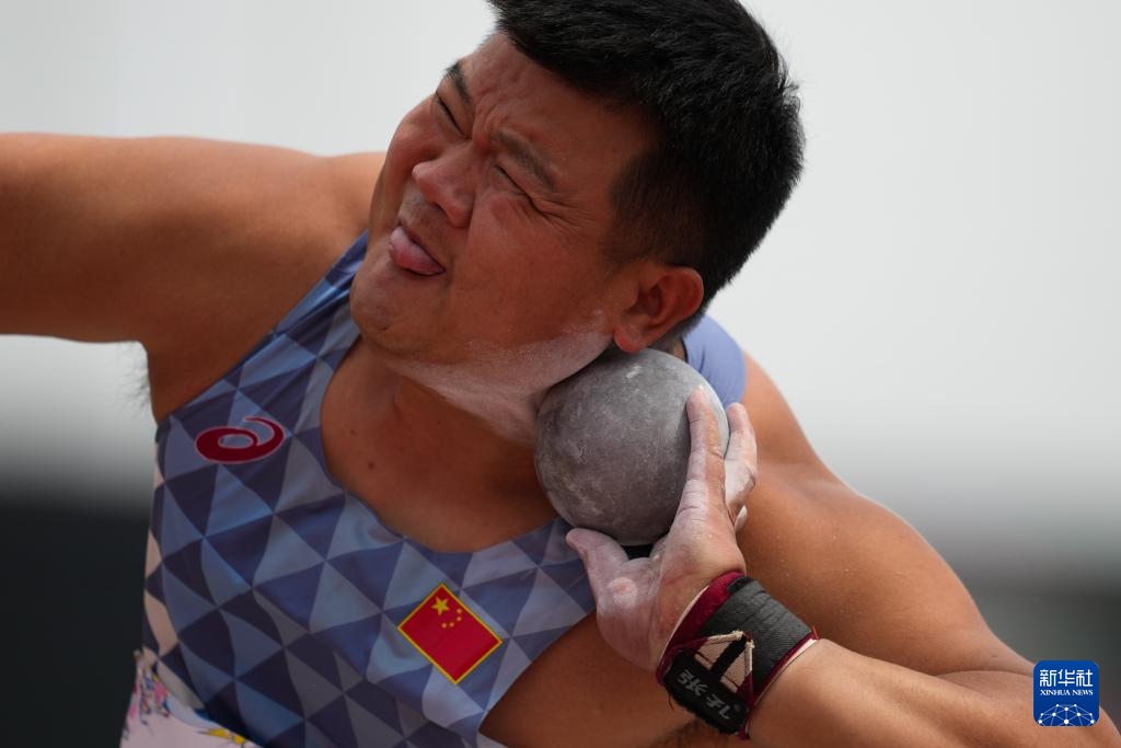 5月22日,中国选手危恩龙在男子铅球F46级别决赛中,最终他以15米02的成绩位列第六。新华社记者 张笑宇 摄