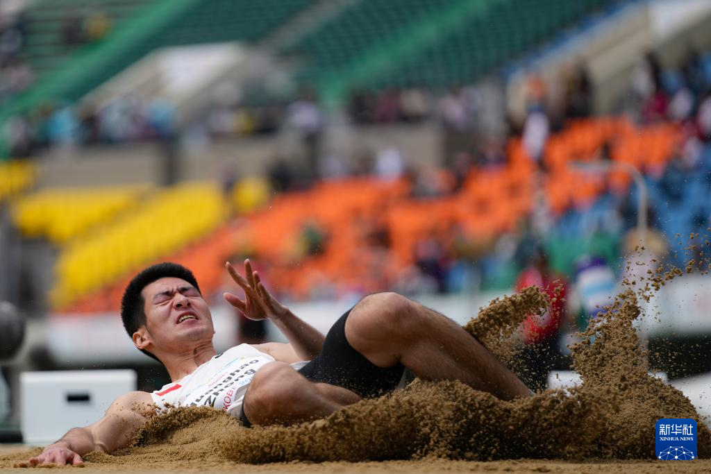 5月22日,中国选手衷黄浩在男子跳远T38级别决赛中,最终他以6米66的成绩获得冠军。新华社记者 张笑宇 摄