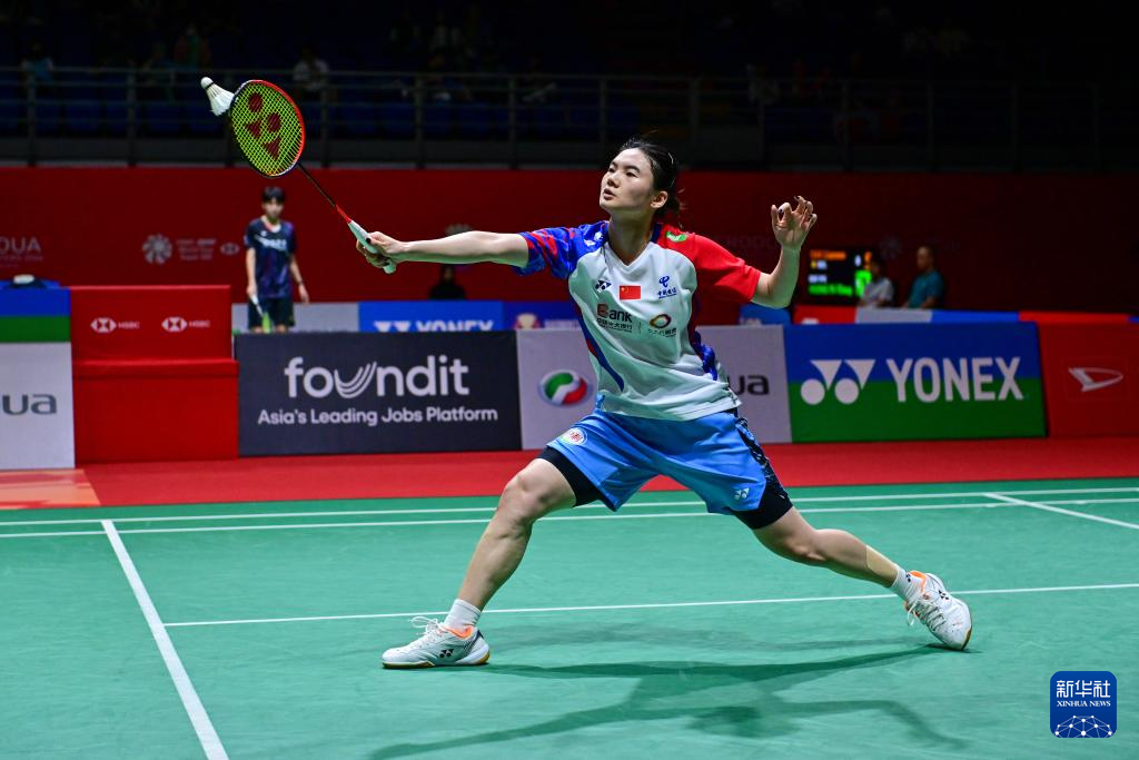 5月22日,韩悦在比赛中回球。新华社发(张纹综摄)