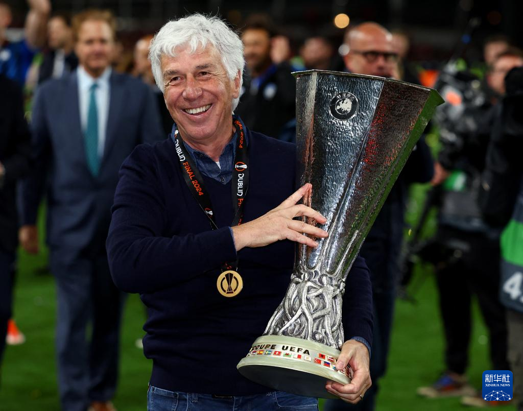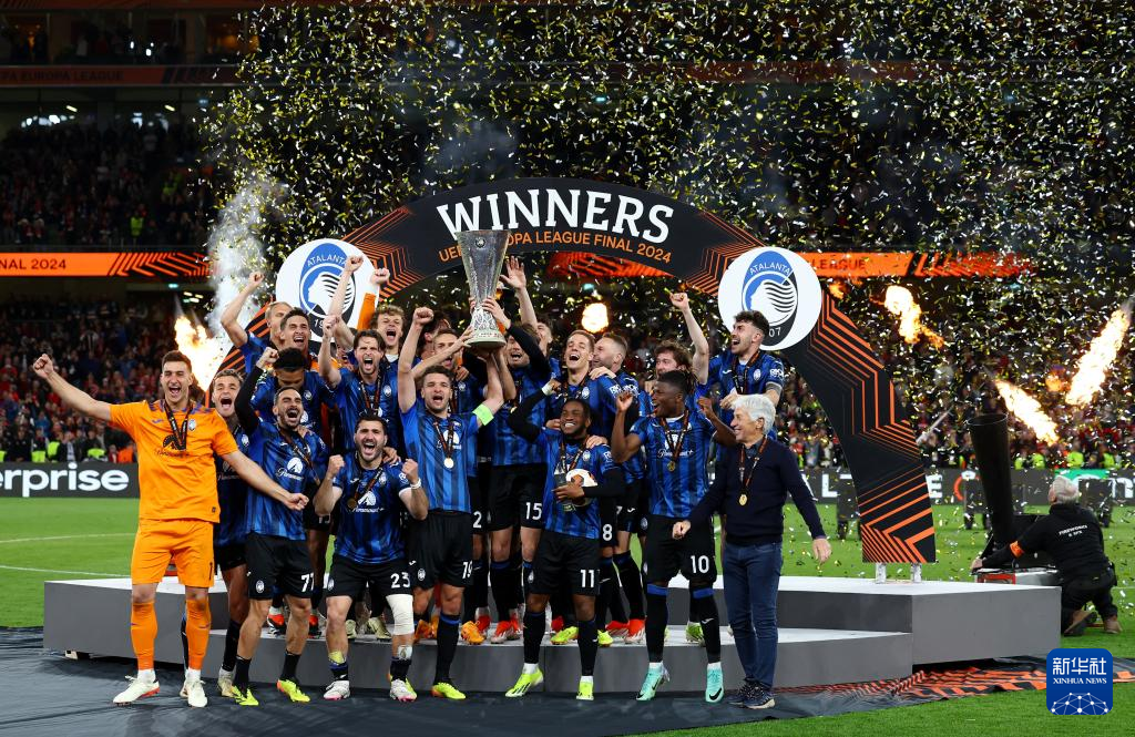 当日,在爱尔兰都柏林举行的2023-2024赛季欧罗巴联赛决赛中,意甲亚特兰大队3比0战胜德甲勒沃库森队,夺得冠军。