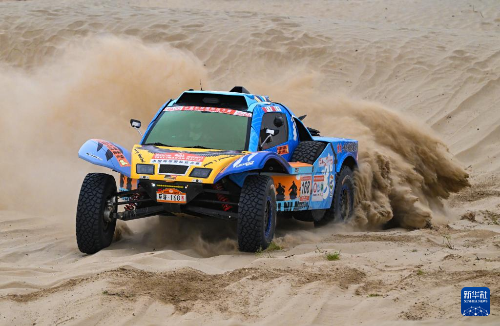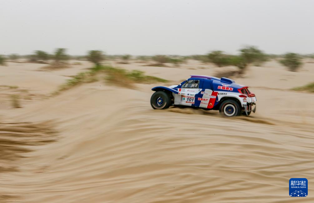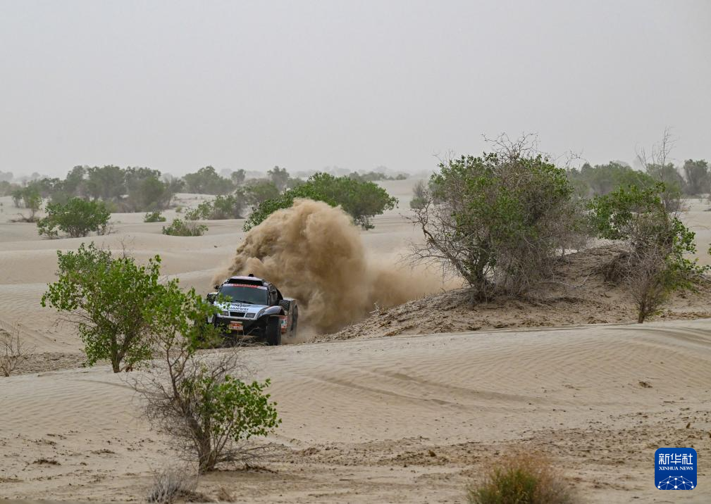 5月23日,黑龙江龙嘉先越拉力艺车队车手张德金、领航员陈庆开驾驶赛车在比赛中。新华社记者 陈朔 摄