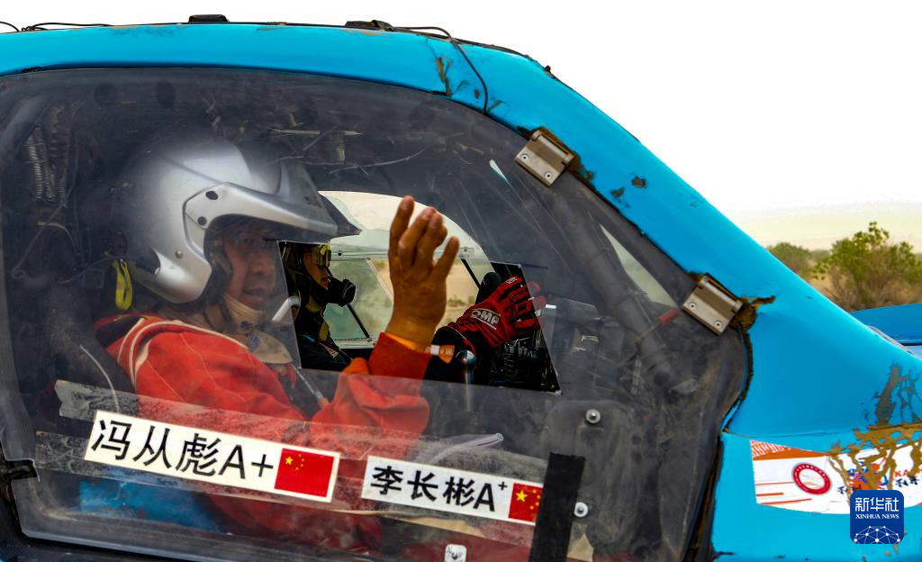 5月23日,陕西云翔车队车手刘彦贵、领航员付昕明驾驶赛车在比赛中。新华社记者 陈朔 摄