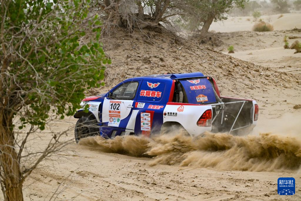 5月23日,陕西云翔汽摩运动有限公司车手訾云刚、领航员马文科驾驶赛车在比赛中。新华社记者 陈朔 摄