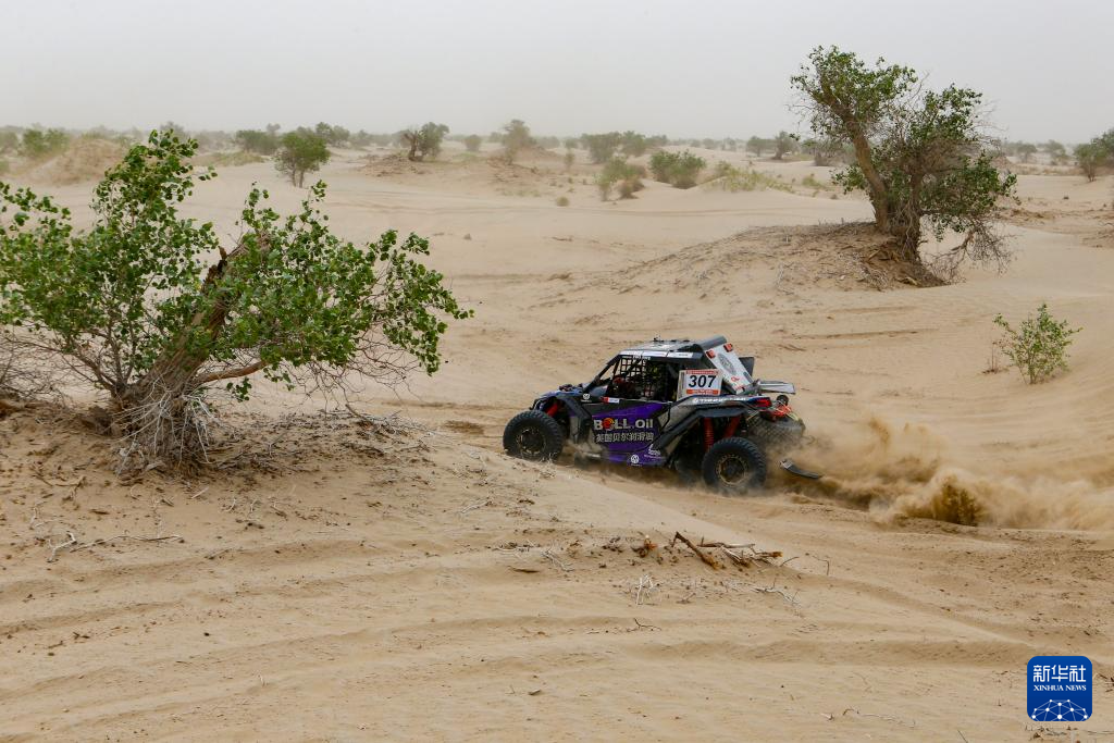 5月23日,牛轰轰车队车手牛月华、领航员张墨臻驾驶赛车在比赛中。新华社记者 陈朔 摄