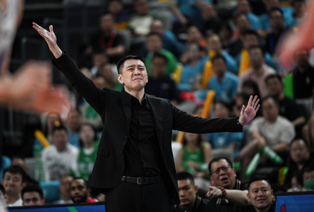 5月22日,辽宁队主教练杨鸣在总决赛第四场比赛中在场边指导。新华社记者 王菲 摄