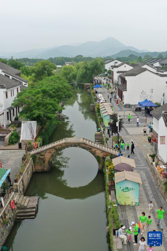 5月25日,参加定向赛的选手经过八里店镇潞村古村(无人机照片)。新华社记者 黄宗治 摄