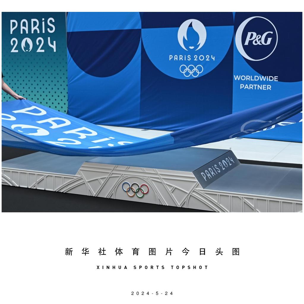 这是5月23日拍摄的巴黎奥运会领奖台设计揭晓仪式现场。新华社发(朱利安·马蒂亚摄)