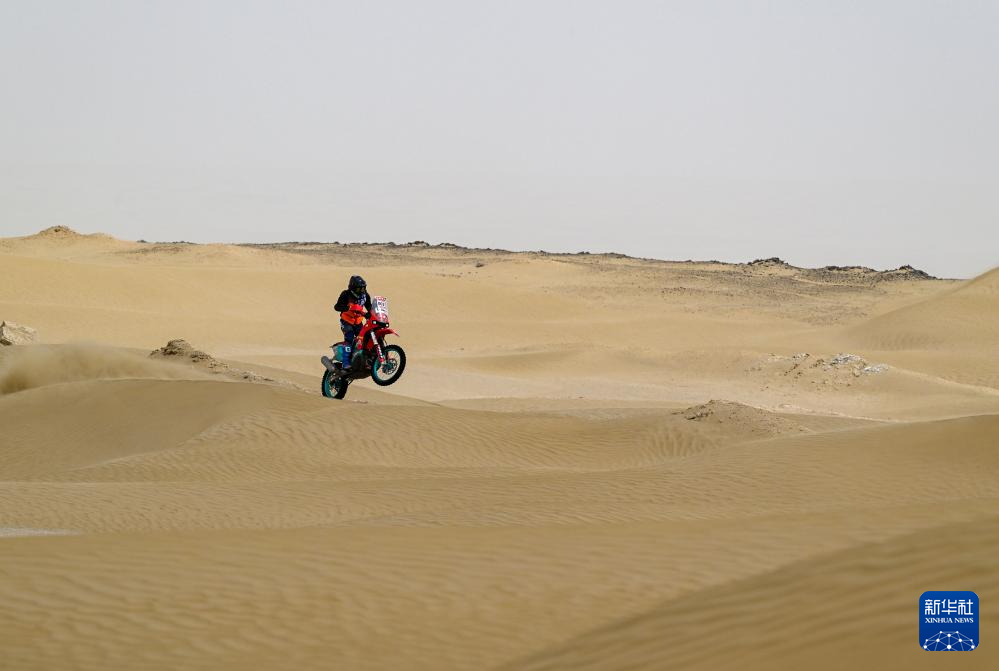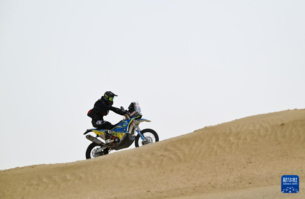 5月25日,凯越机车越野车队中国车手邓连松在比赛中。新华社记者 陈朔 摄