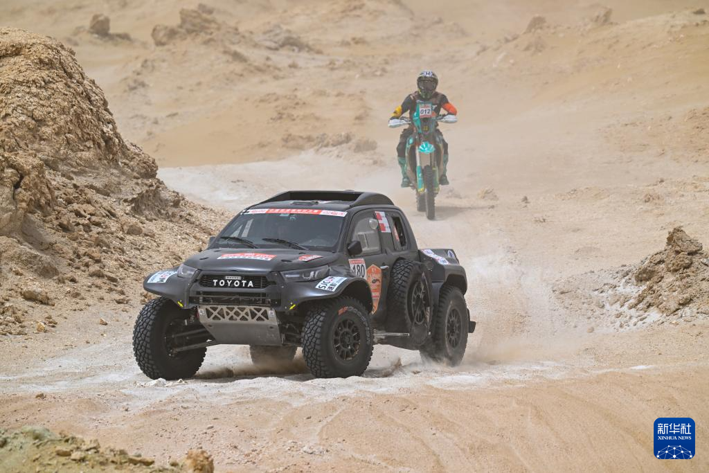 5月25日,河南百通拉力车队车手王伯彤、领航员苗志军驾驶赛车在比赛中。新华社记者 陈朔 摄