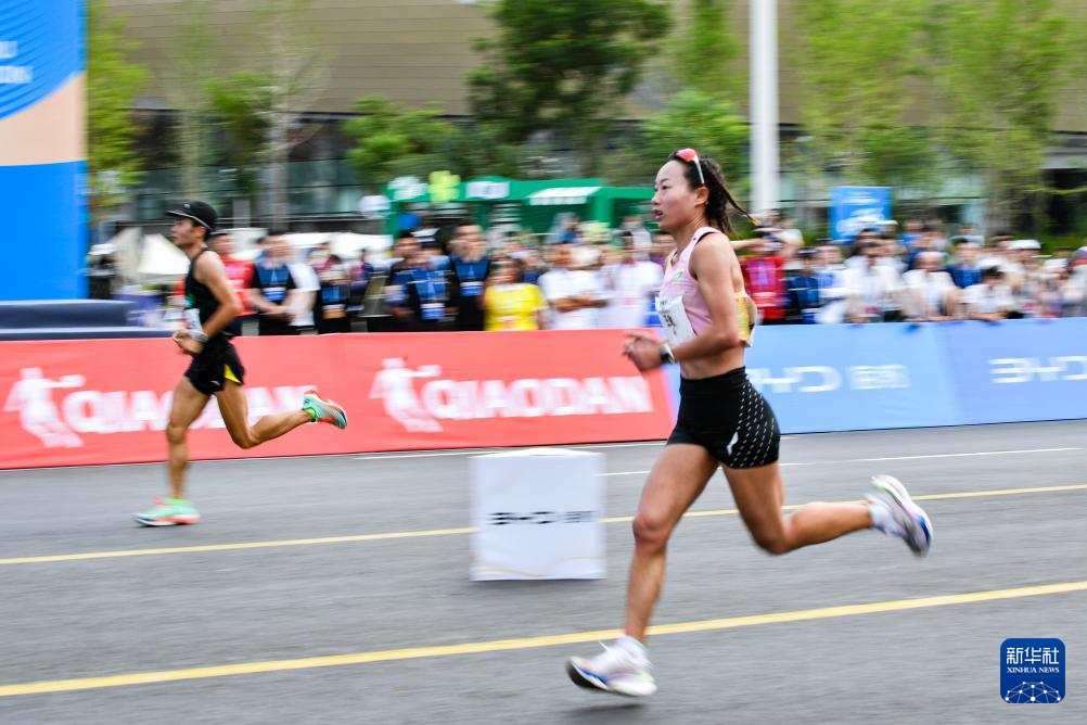 5月26日,中国选手钟佳萌在比赛中。最终,她以2小时41分11秒的成绩获得女子马拉松中国籍参赛选手第二名。新华社记者 郎兵兵 摄