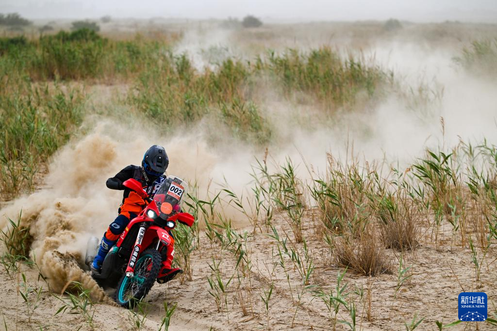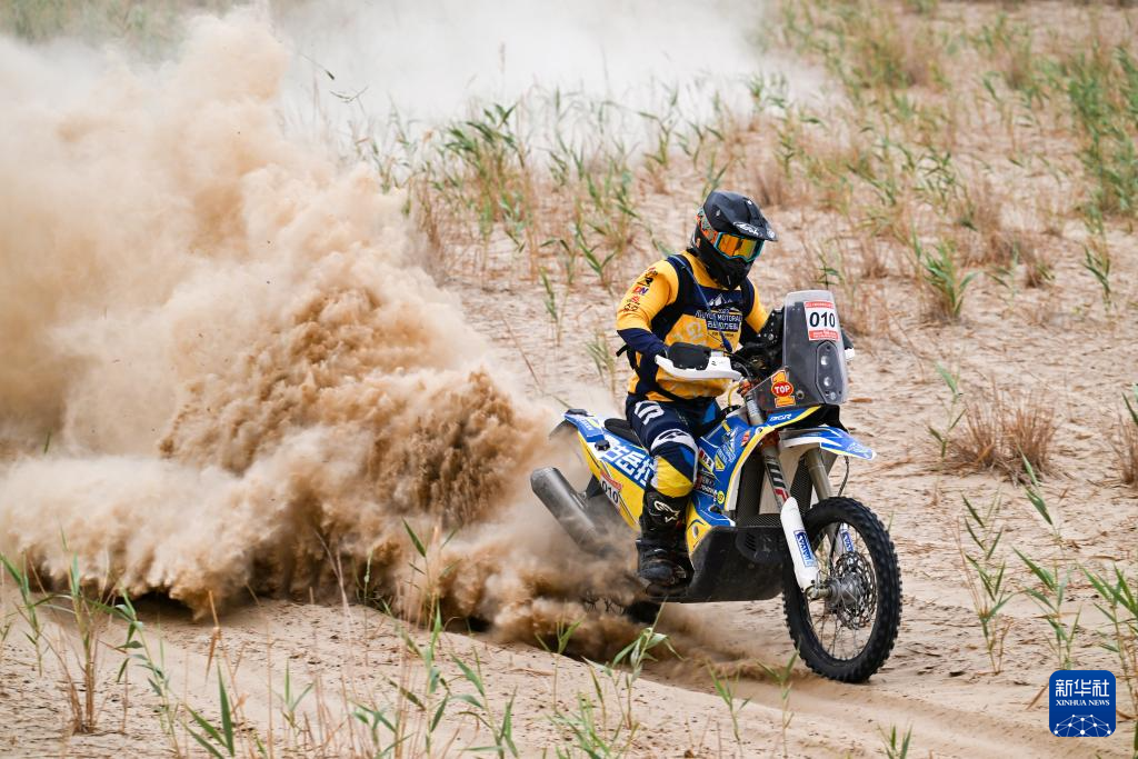 5月26日,凯越机车越野车队车手邓连松在比赛中。新华社记者 陈朔 摄
