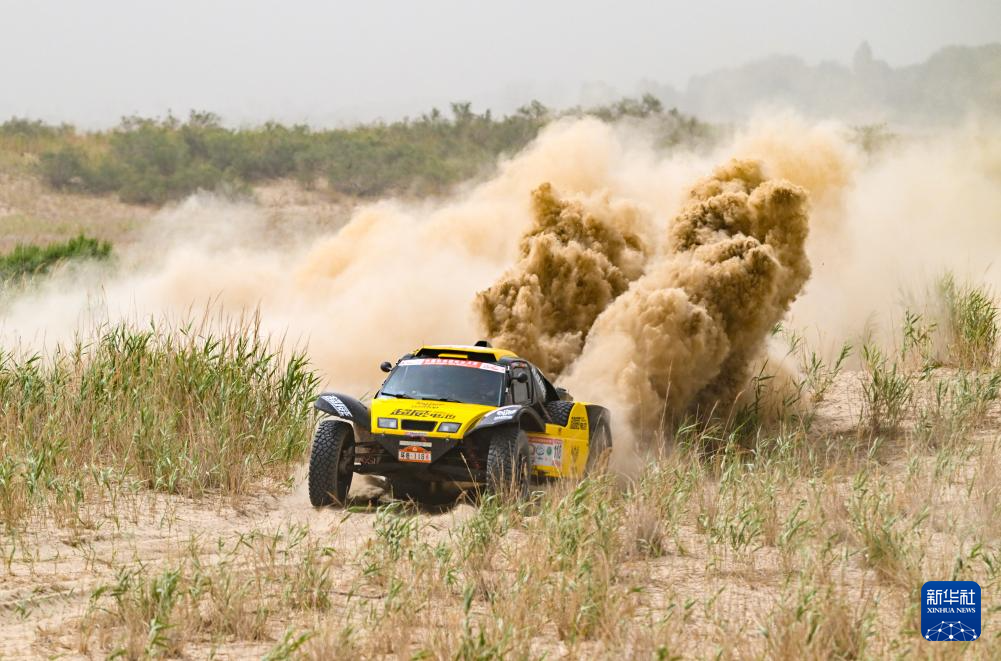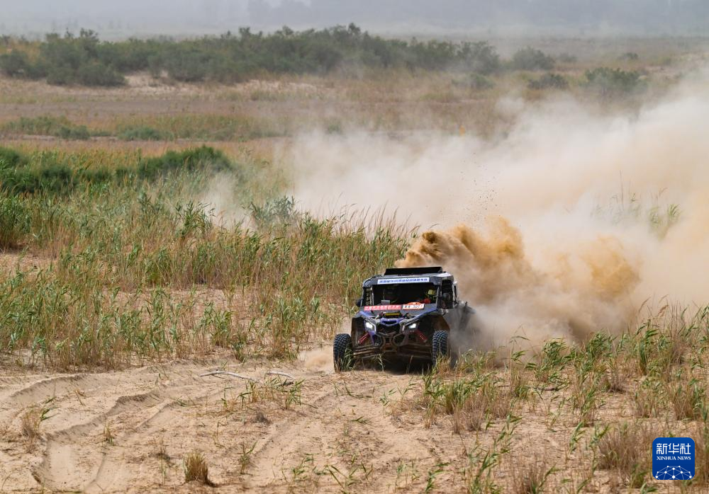 5月26日,河北迁安九江汽摩运动有限公司车手陶永明、领航员沈鑫在比赛中。新华社记者 陈朔 摄