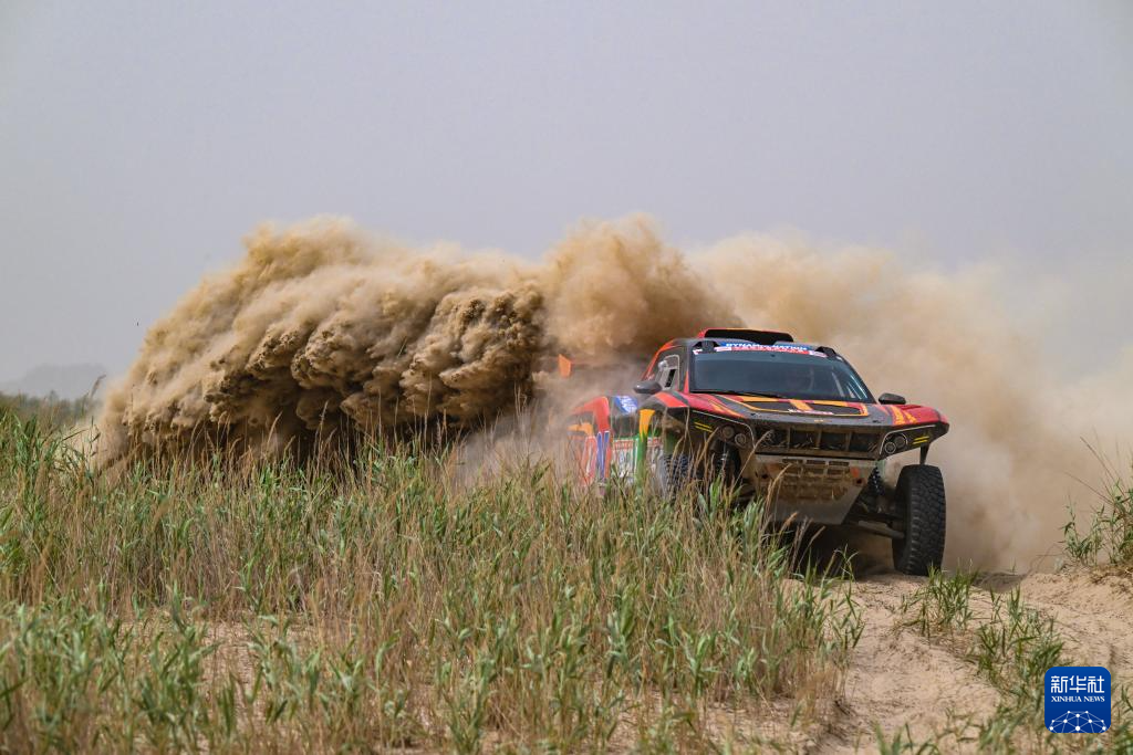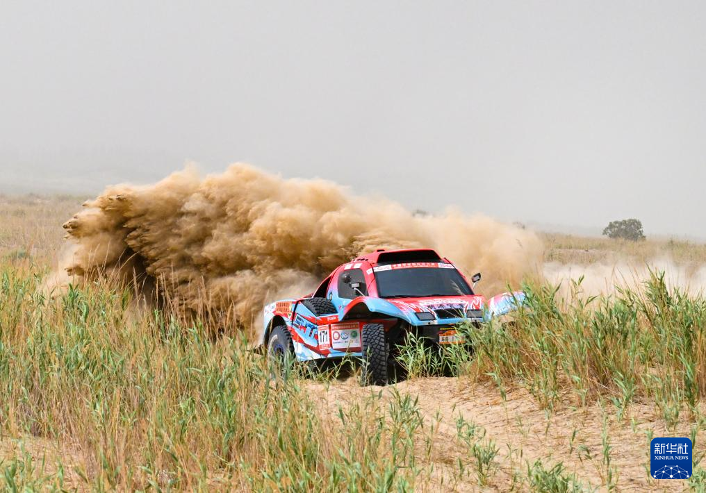 5月26日,英国贝尔润滑油极道体育车队车手王庆喜、领航员郭峰在比赛中。新华社记者 陈朔 摄
