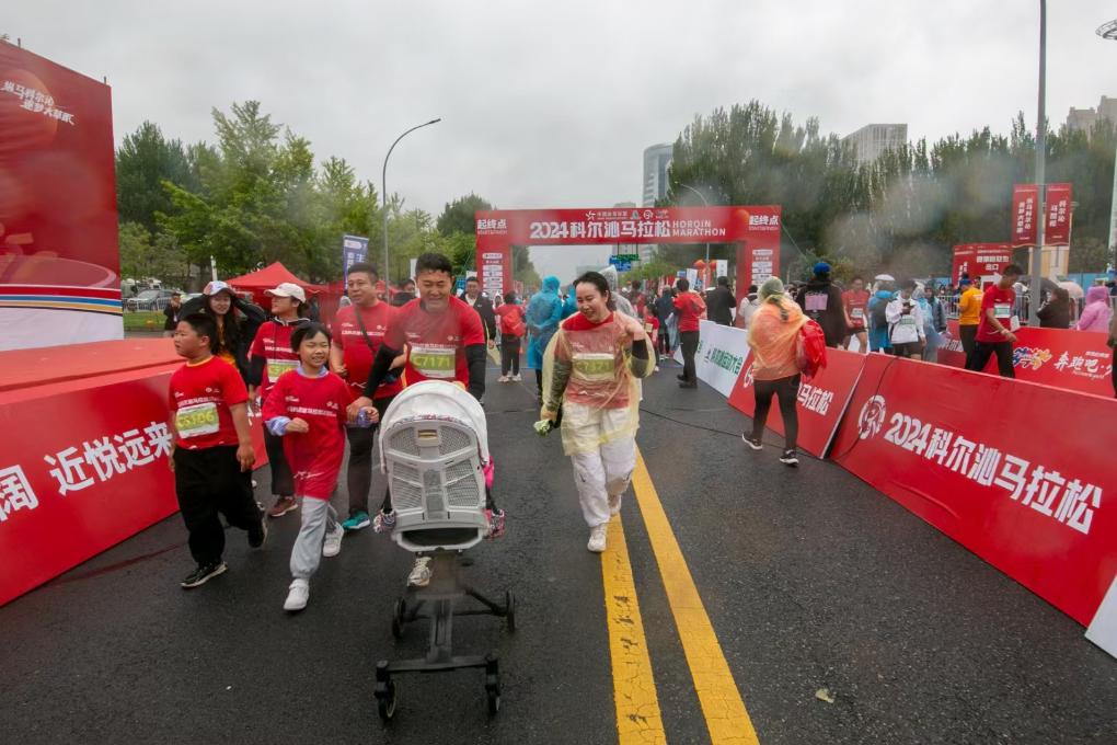 带着一大一小两个孩子来参赛的蒙古族汉子赵智宇是一位网球教练,曾在北京马拉松当过三年志愿者的他,终于在家乡圆了自己“跑马”的梦想。“通过跑马拉松,让孩子们了解一下相关的知识,也想把‘蒙古马精神’发扬光大,同时让她们的身体素质得到提高。”