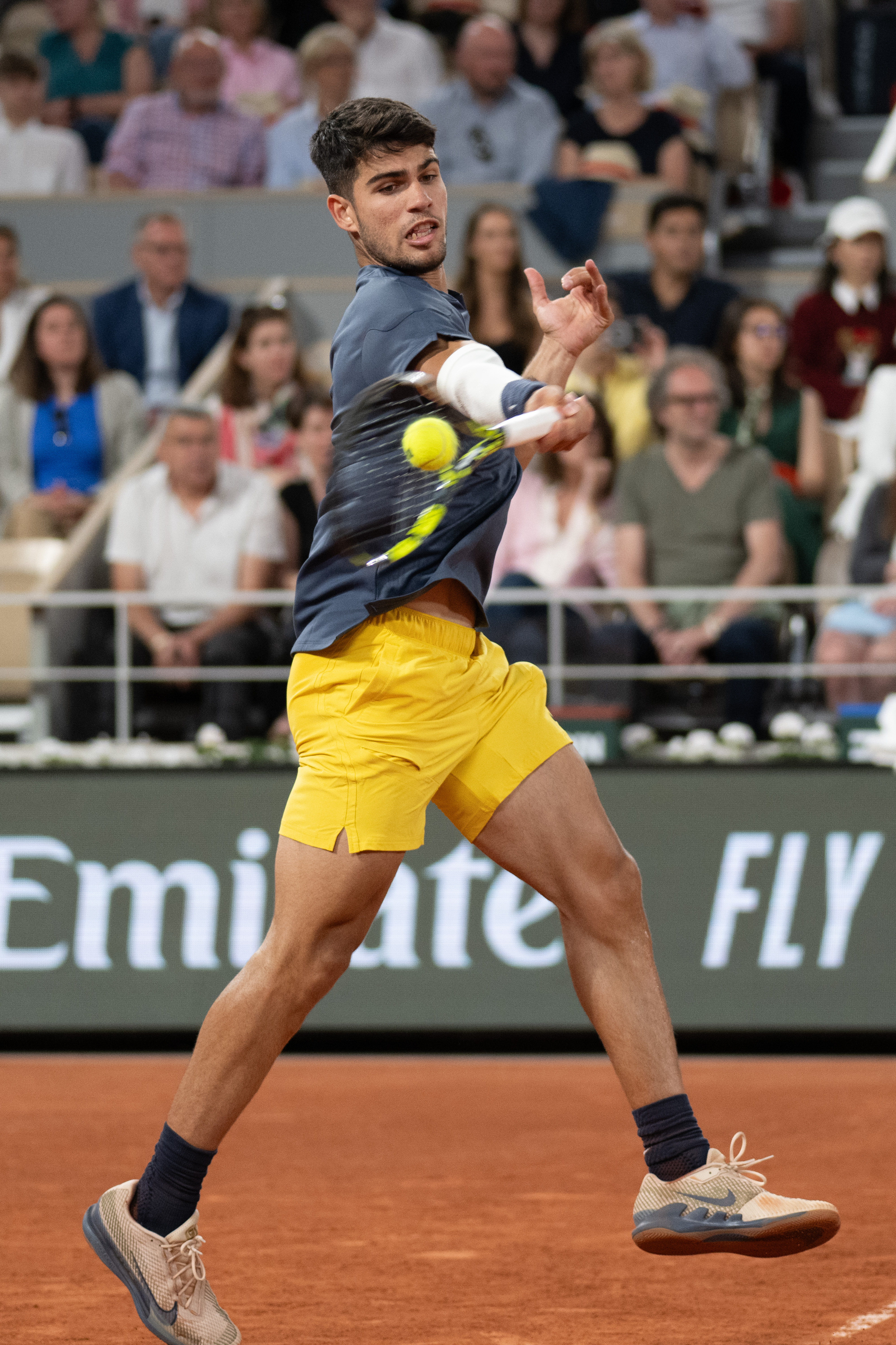 5月26日,阿尔卡拉斯在比赛中回球。新华社记者 孟鼎博 摄