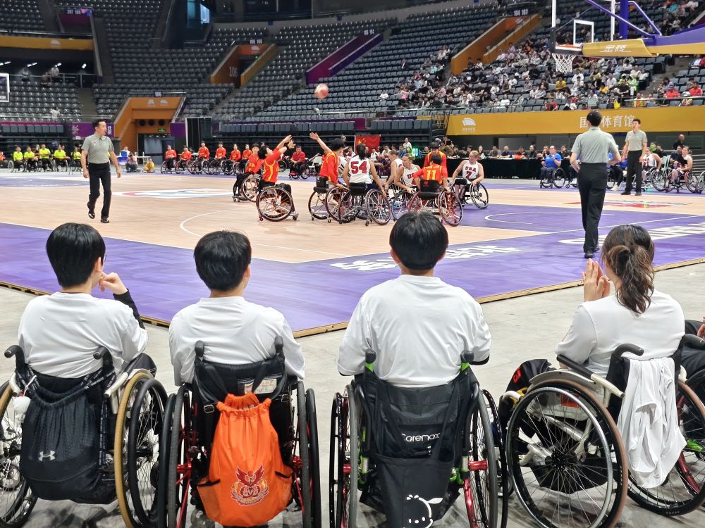 训练营正值今年全国助残日期间,为了让更多残疾人朋友感受奥运文化,了解轮椅篮球项目,中国残疾人体育运动管理中心邀请了北京市的100多名残疾人朋友现场观赛。国家体育馆是2008年北京残奥会轮椅篮球项目和2022年北京冬残奥会残奥冰球项目的办赛场馆,残疾人朋友们在赛前参观了这一“双奥场馆”,感受丰厚的奥运文化底蕴,体验一流的无障碍服务水平。