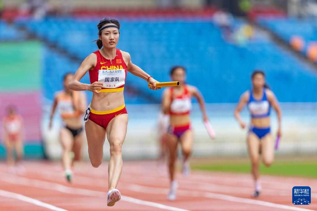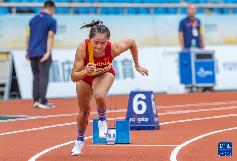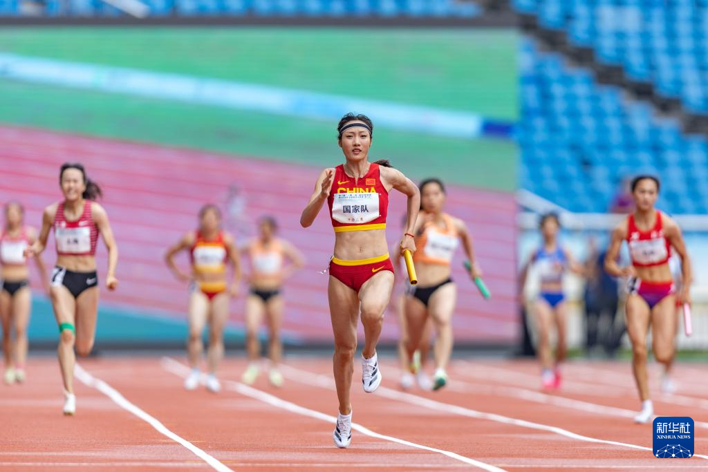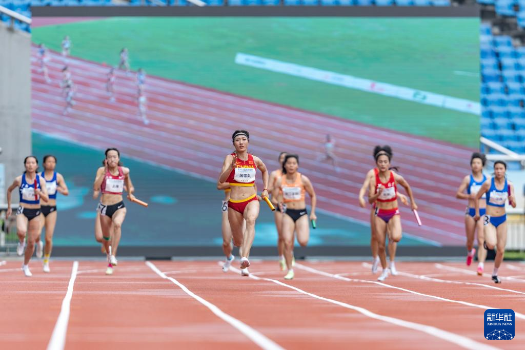 5月28日,国家队第一棒梁小静在比赛中。新华社记者 黄伟 摄