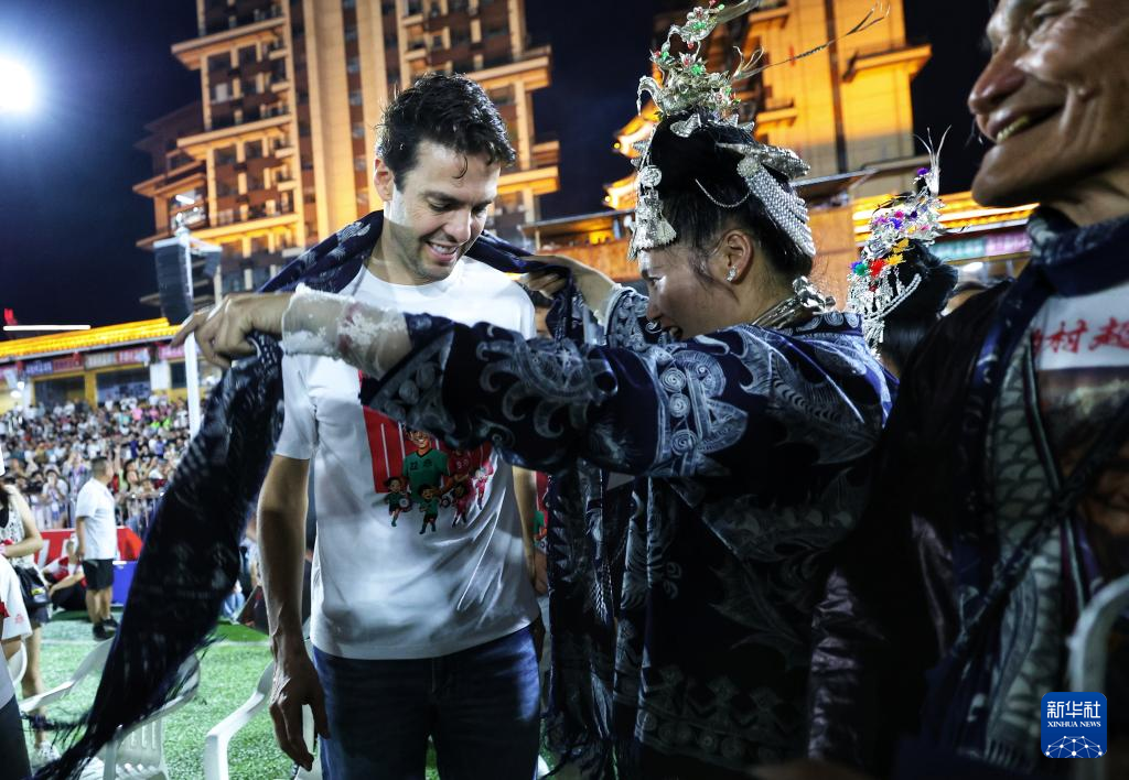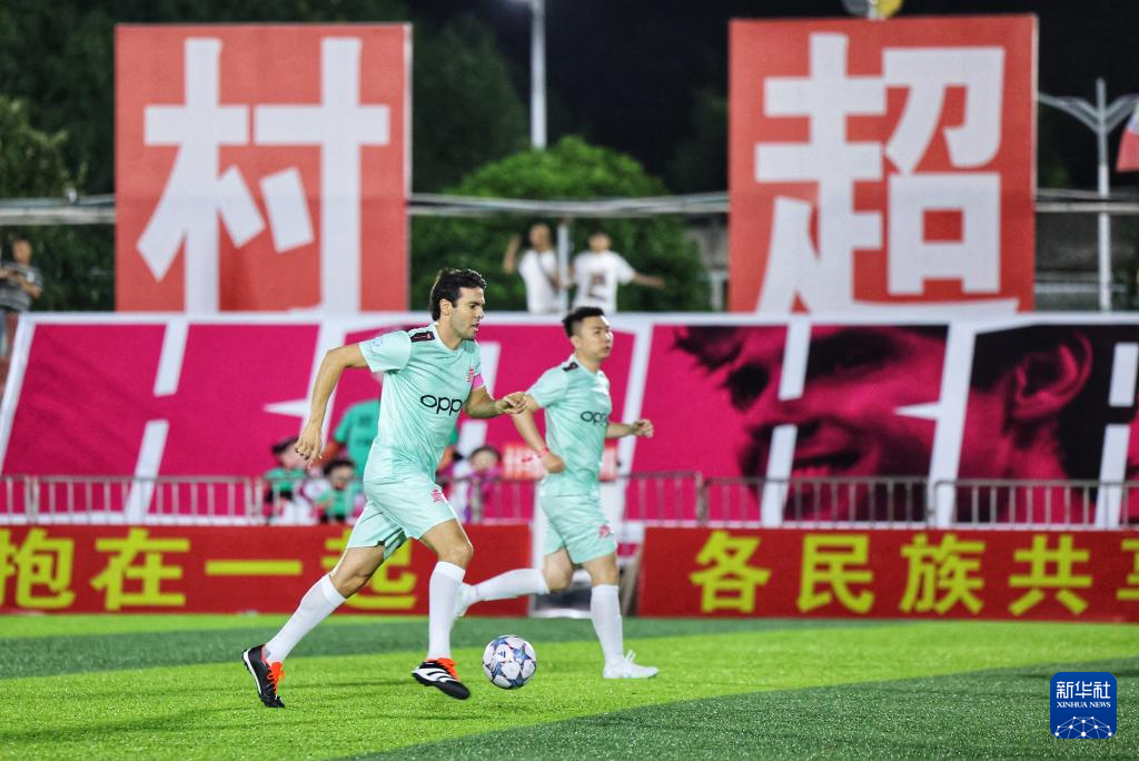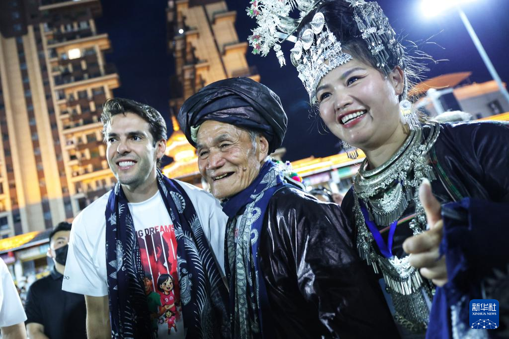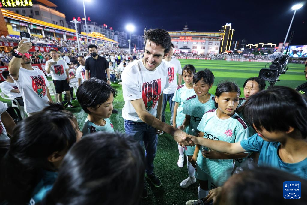 当日,“逐梦”冠军公益赛在贵州省黔东南苗族侗族自治州榕江县“村超”球场举行。本次公益赛包括“逐梦”冠军青少年女足公益赛与“逐梦”冠军明星公益赛,巴西足球名宿卡卡、前中国女足队员王坤等亮相球场。