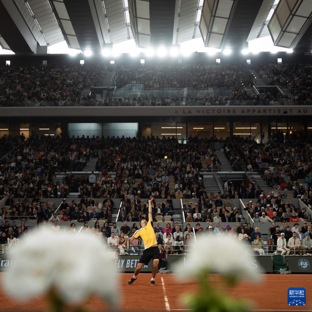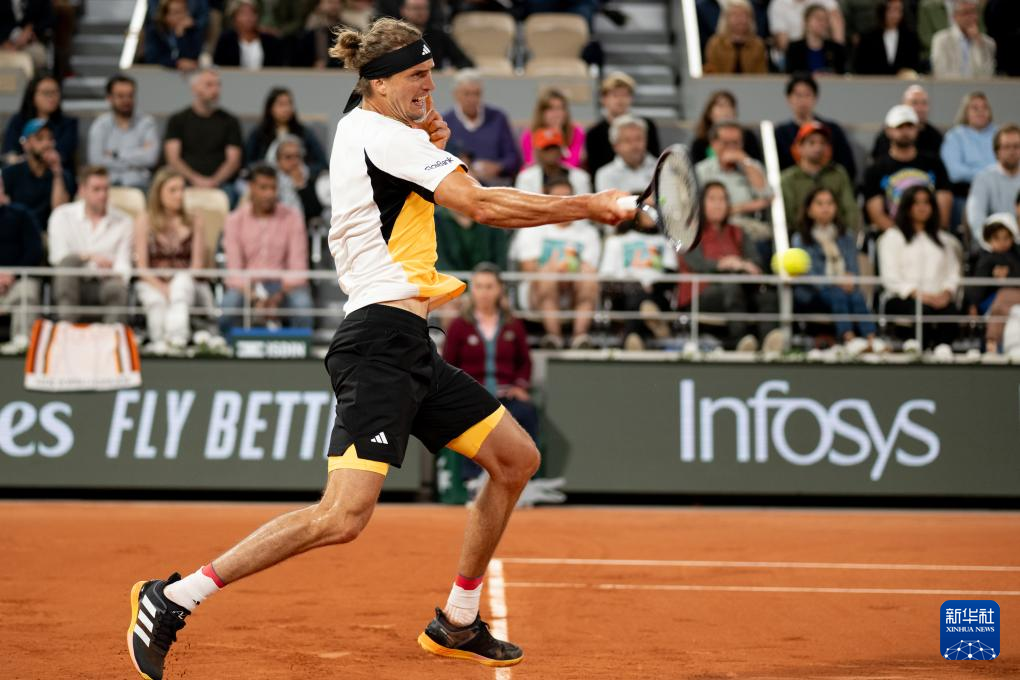 5月27日,兹维列夫在比赛中回球。新华社记者 孟鼎博 摄