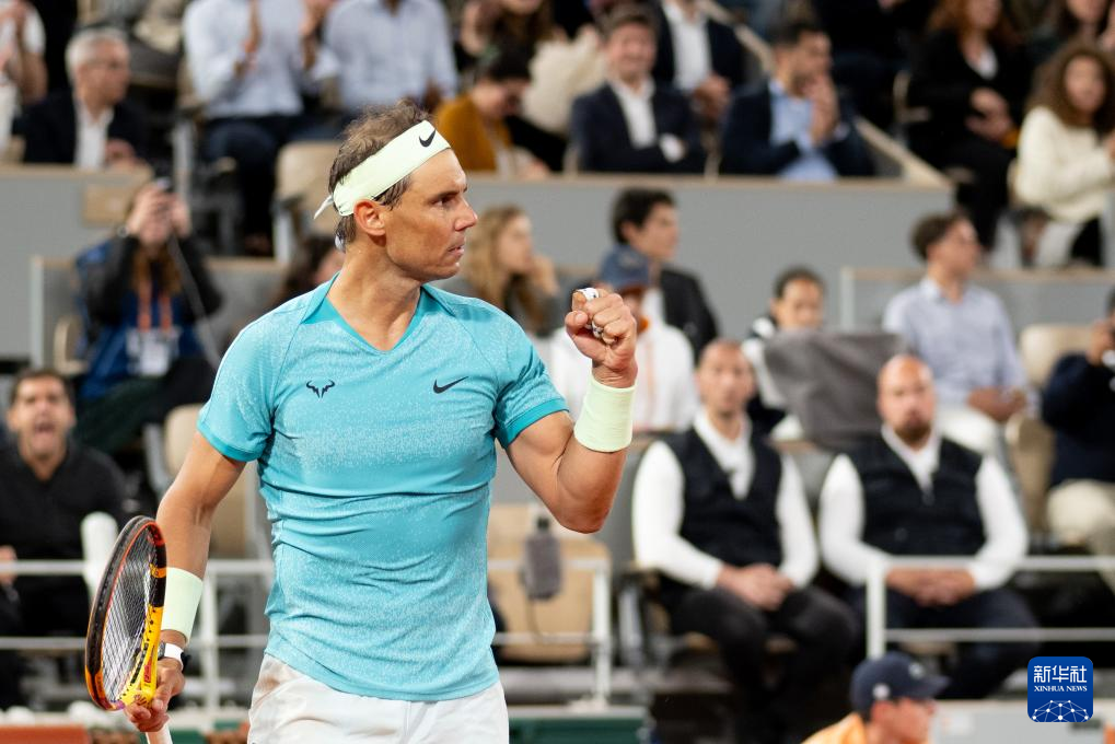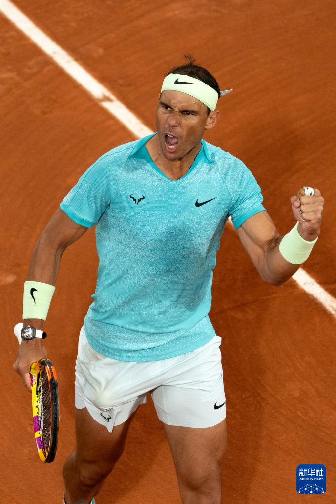 5月27日,纳达尔在比赛中庆祝得分。新华社记者 孟鼎博 摄