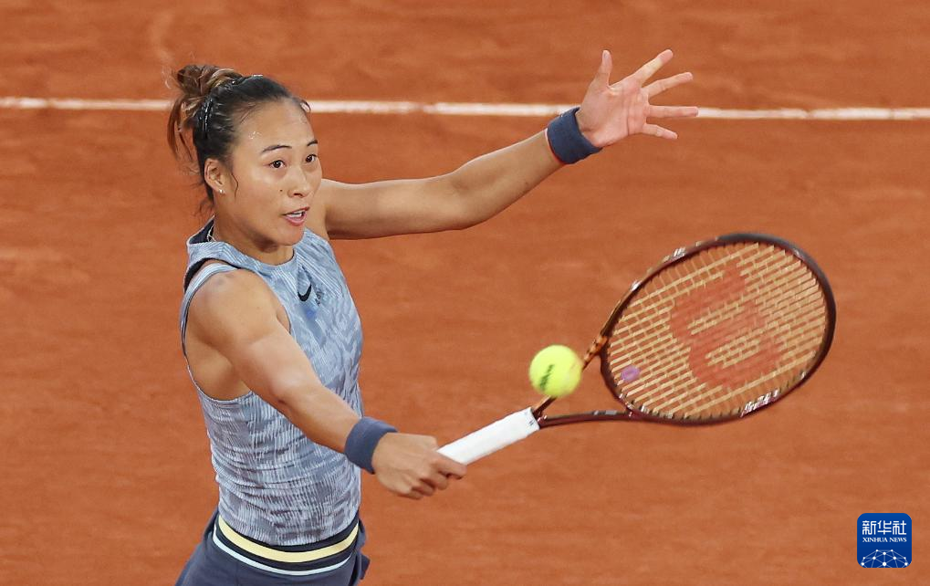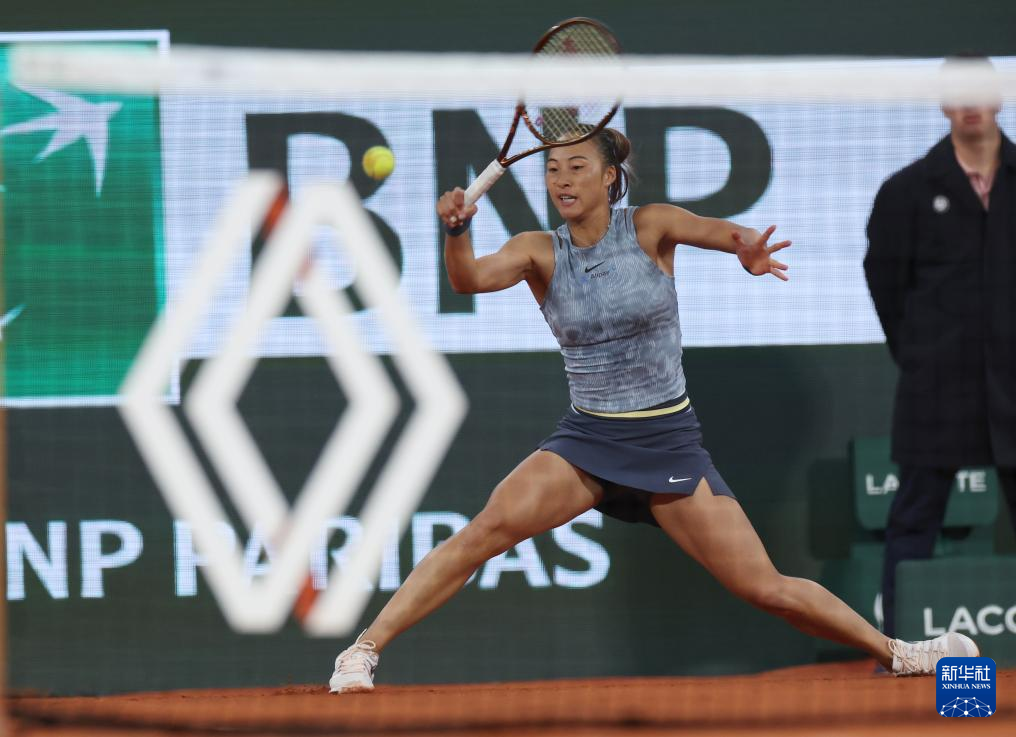 5月28日,郑钦文在比赛中回球。新华社记者 高静 摄