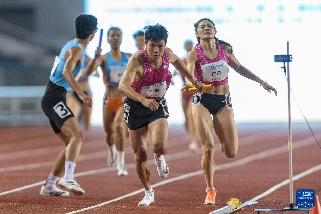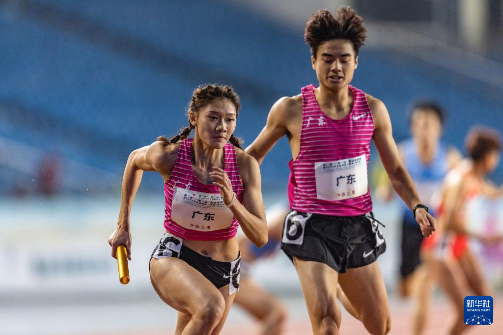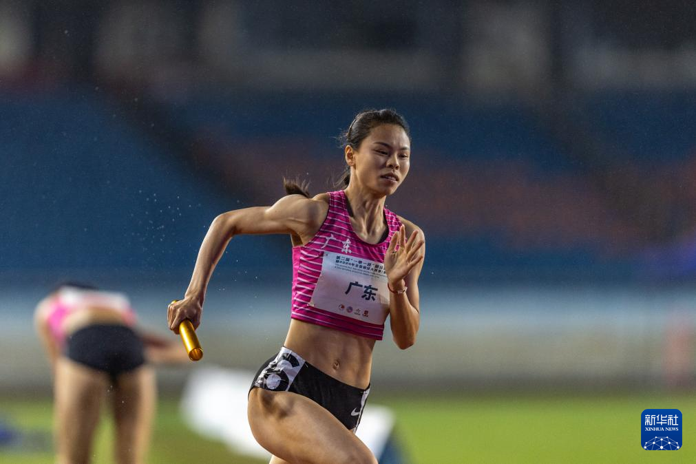 5月29日,广东队第四棒莫家蝶在比赛中。新华社记者 黄伟 摄