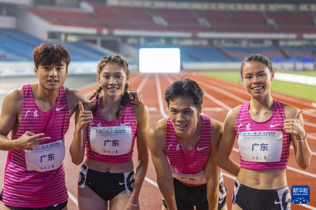 当日,在重庆市举行的第二届“一带一路”田径邀请赛暨2024年全国田径大奖赛第五站混合4x400米接力决赛中,由梁宝棠、孔莹蓥、李懿卿、莫家蝶组成的广东队以3分17秒82的成绩夺得冠军,湖北弹射者队和重庆队分获亚军、季军。