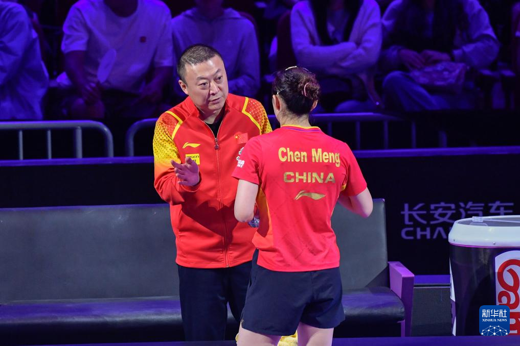 5月30日,陈梦(右)与教练马琳在比赛间隙交流。新华社记者 张子彧 摄