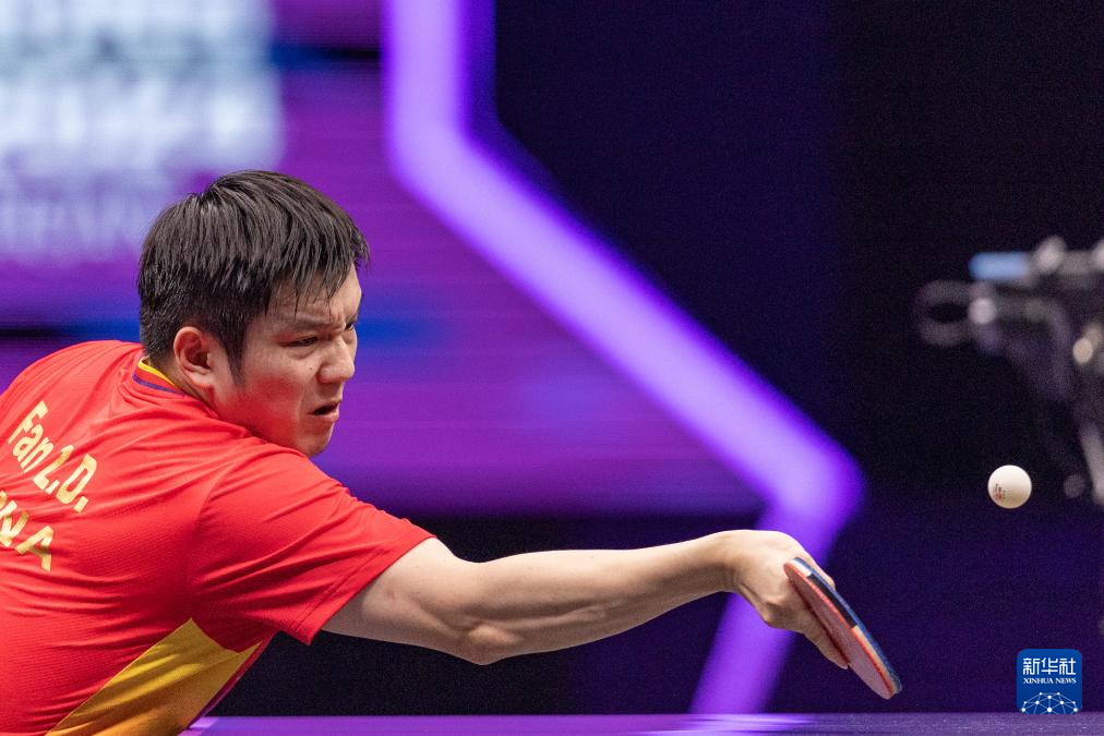 5月30日,樊振东在比赛中回球。新华社记者 黄伟 摄