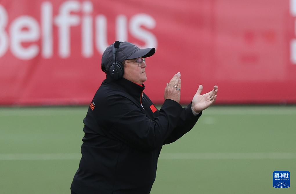 5月30日,中国队主教练安南在比赛中为队员加油。新华社记者 赵丁喆 摄
