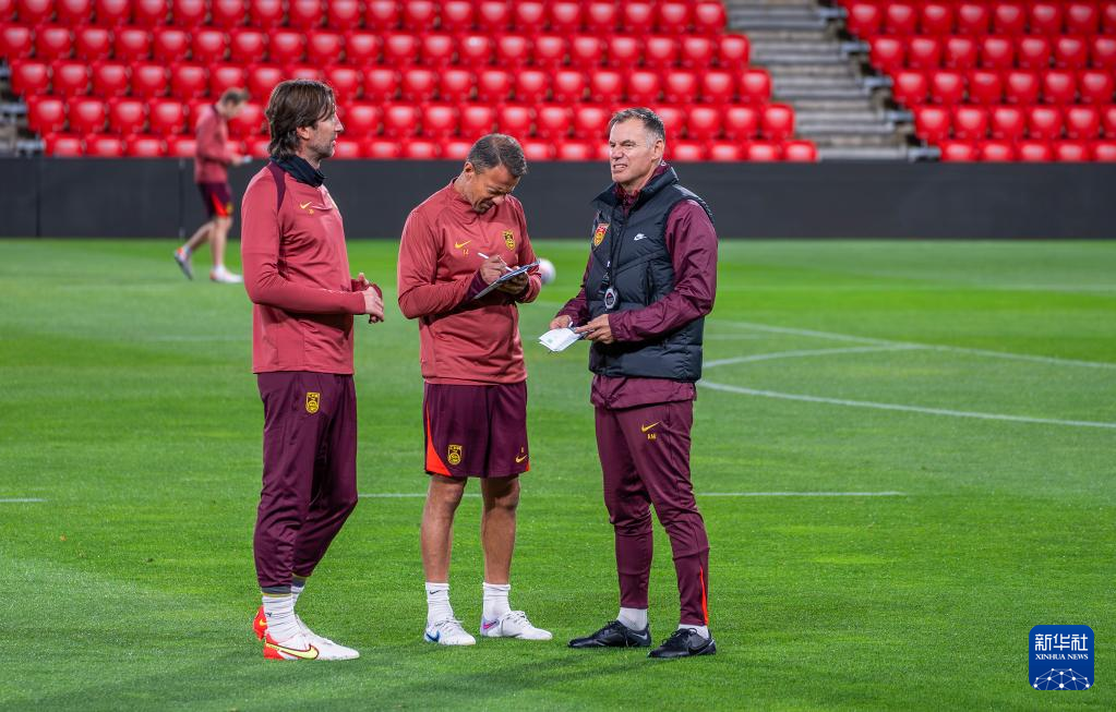 5月30日,中国国家女子足球队主教练安特·米利西奇(右)在训练中。新华社发(谢思达摄)