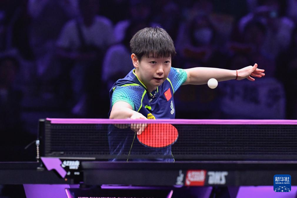5月30日,孙颖莎在比赛中回球。新华社记者 张子彧 摄