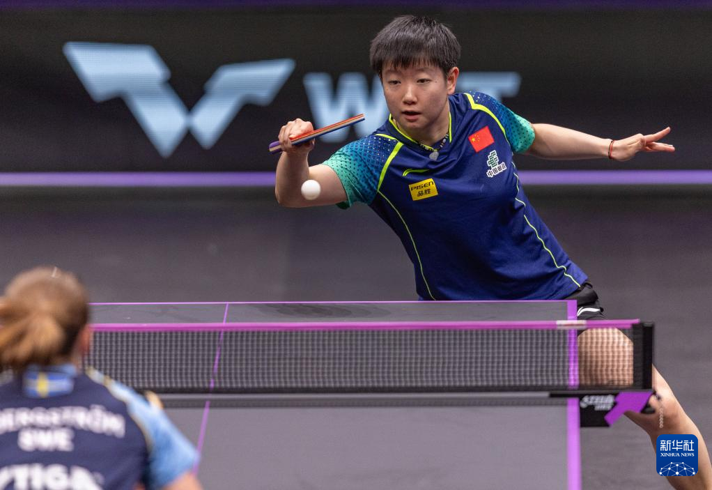 5月30日,孙颖莎在比赛中回球。新华社记者 黄伟 摄