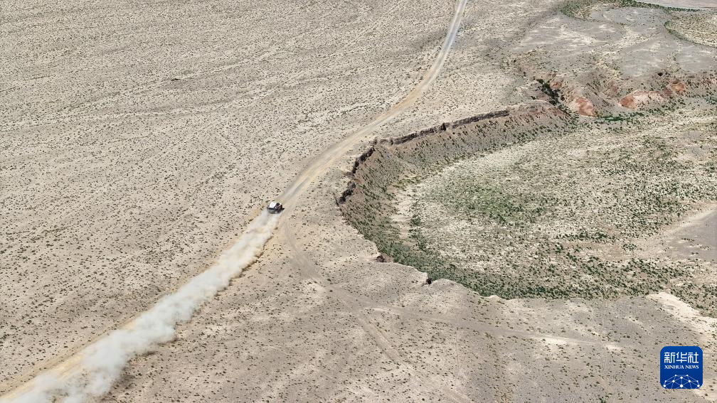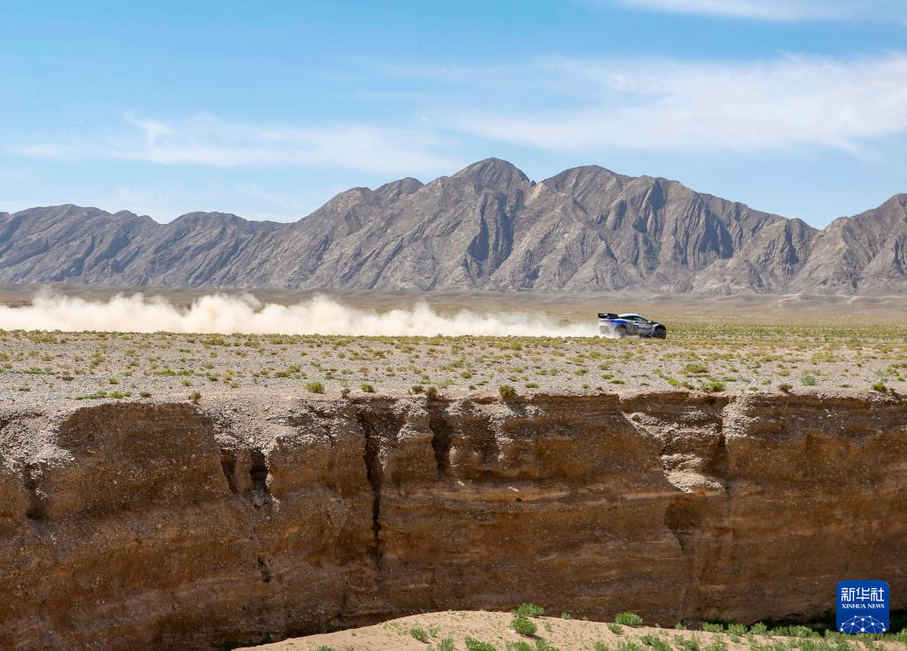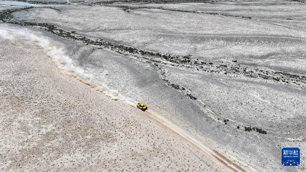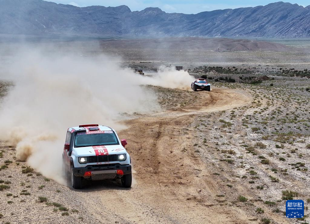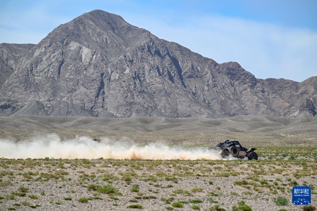 5月30日,韩魏汽车运动队中国车手乔晓华、领航员吴奇在比赛中(无人机照片)。新华社记者 陈朔 摄