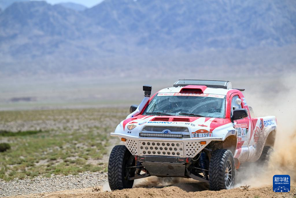 5月30日,新疆八一钢铁车队中国车手张天化、领航员连俊杰驾驶赛车在比赛中。新华社记者 陈朔 摄