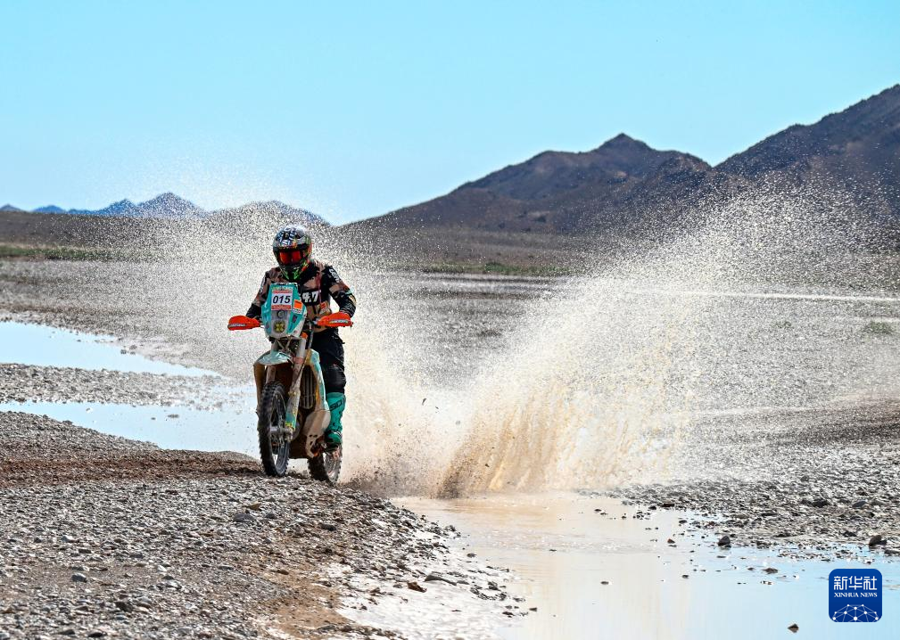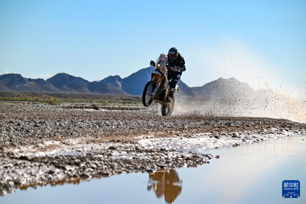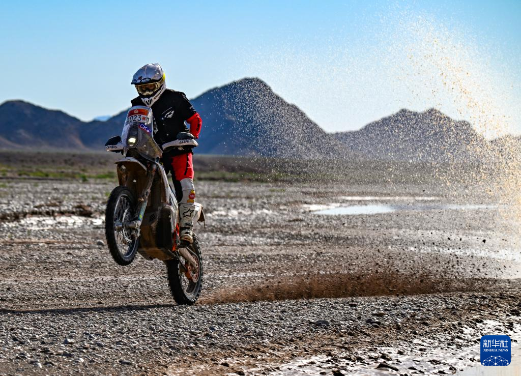 5月30日,古岳拉力车队中国车手阿尤布·马伟笑在比赛中。新华社记者 陈朔 摄