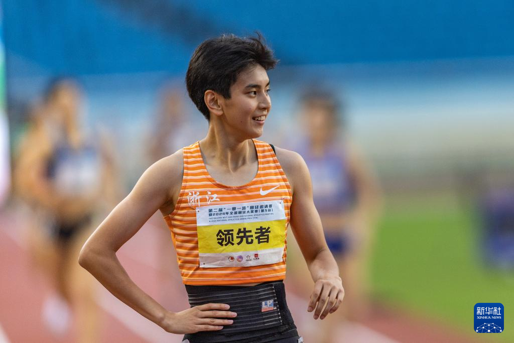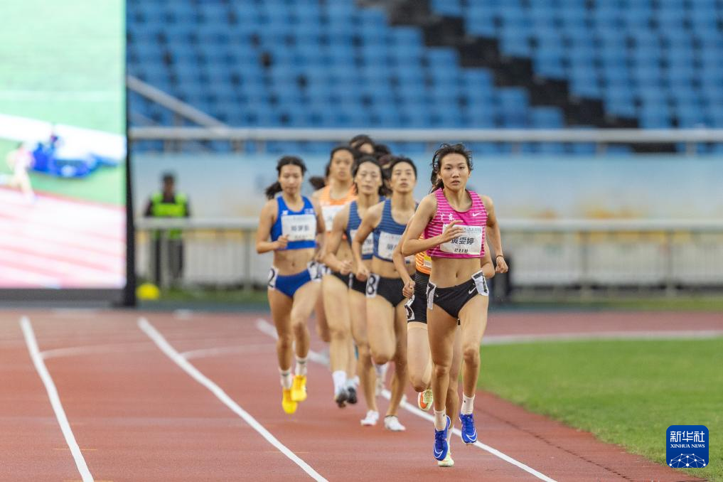 5月28日,浙江体彩队选手徐佳欢女子七项全能(中)在800米比赛后。新华社记者 黄伟 摄