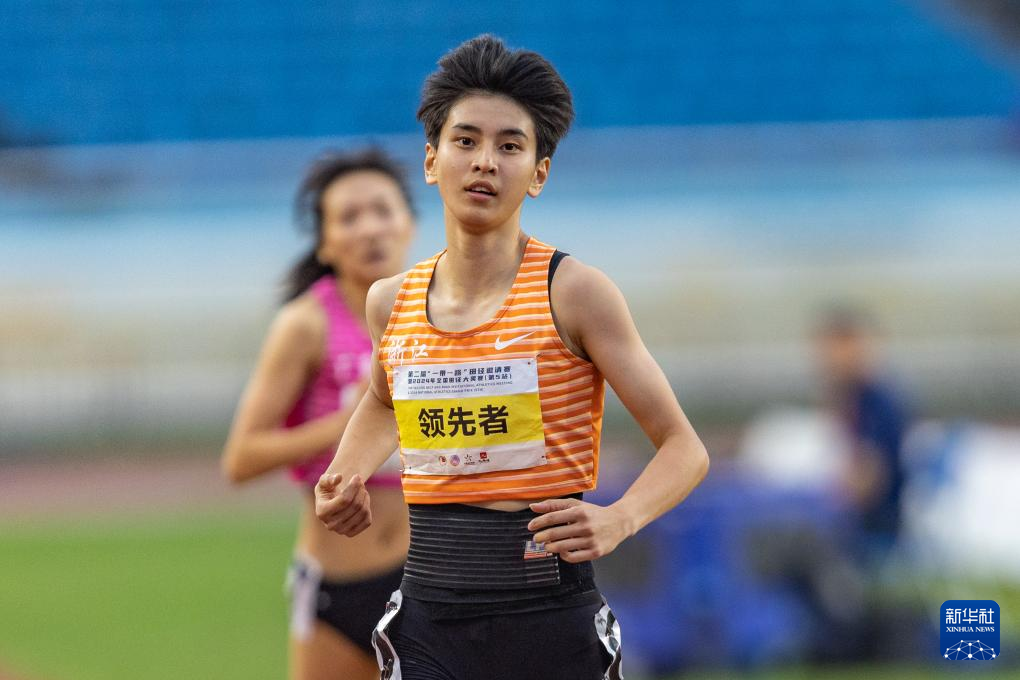 5月28日,浙江体彩队选手徐佳欢(左)和广东队选手黄雯婷在女子七项全能800米比赛中。新华社记者 黄伟 摄